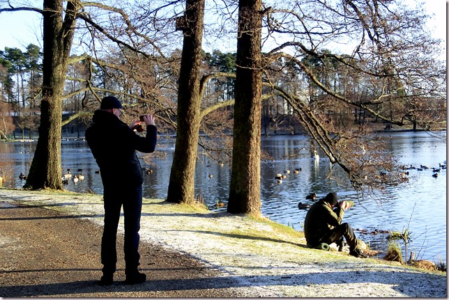 the swans are amazing, can't wait to hear them. a beautiful day for ALL you photographers. that photo of the one sitting down with the lens in it's cover is really really good. to bad he can't see it. never thought about a hoodie for a lens, but it makes sense. i wonder what the other photographers did with their photos and who got the 3 photographers shot.