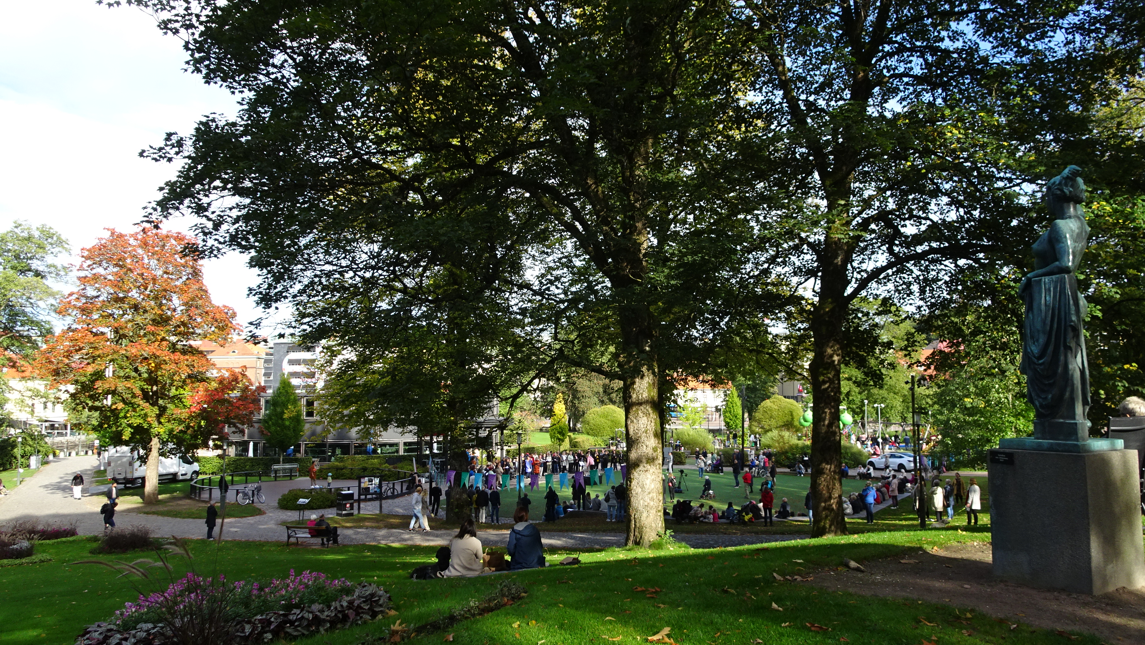 When I got there, I could hear music. It turned out there was an open air choir concert going on - something we've not been spoiled with during the past 1½ year... I recalled I'd probably seen something about it in the local paper - to do with a choir festival this weekend, and also with BorĂ¥s celebrating 400 years as a town. As the weather was nice, and it wasn't too crowded (totally possible to "keep distance") I ended up staying around until the end, i.e. about half an hour. (I arrived in the park shortly after 3 pm. Don't know if they had started at 3 or earlier.)